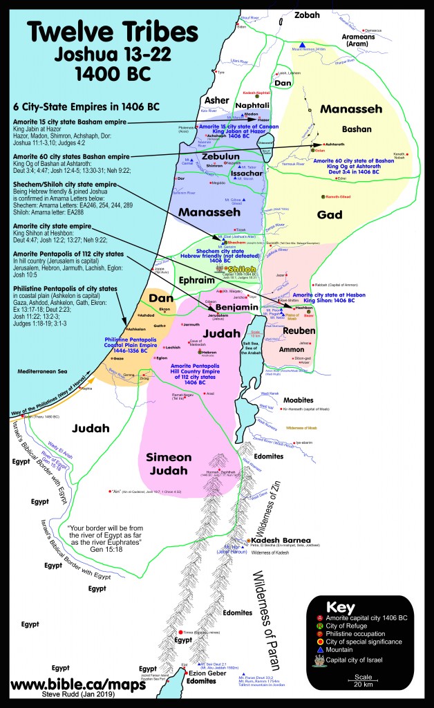 The land of God’s promise to Abraham had been relatively quickly subdued. The important Cannanite kings, their cities and villages had been conquered by Joshua, and many thousands of the Cannaites had lost their lives … but not ALL of them. We are at a point, some seven years after that initial flurry of success, where seven of the tribes had not had their land allotment specified. So, whilst generally allotted, much of it still not settled by them. As you read the Scripture passage this week, the map will provide a glimpse of the territory in the south. Land which was eventually allotted to Ephraim, Dan, Benjamin, Judah and Simeon. Then, to the north of this were Issachar, Zebulun, Naphtali, Asher, and half the tribe of Manasseh. Further, to the East on the other side of the Jordan River, the other half tribe of Manasseh, Gad, and Reuben had a land allotment when Moses was still alive. The tribe of Levi, the priestly tribe, with specific ministry duties were allotted cities within the land, their sustenance provided by the LORD, from the sacrificial and gift offerings brought by the people.
